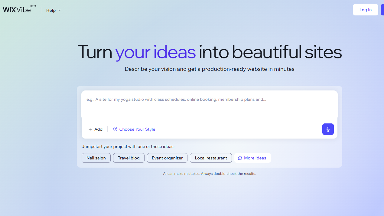 Just Describe your vision and watch it build a functioning website. Vibe code a website from simple prompts - no coding, no stress, just your style in minutes.